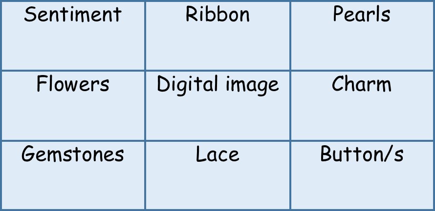 (middle row: flowers, digi image, charm)